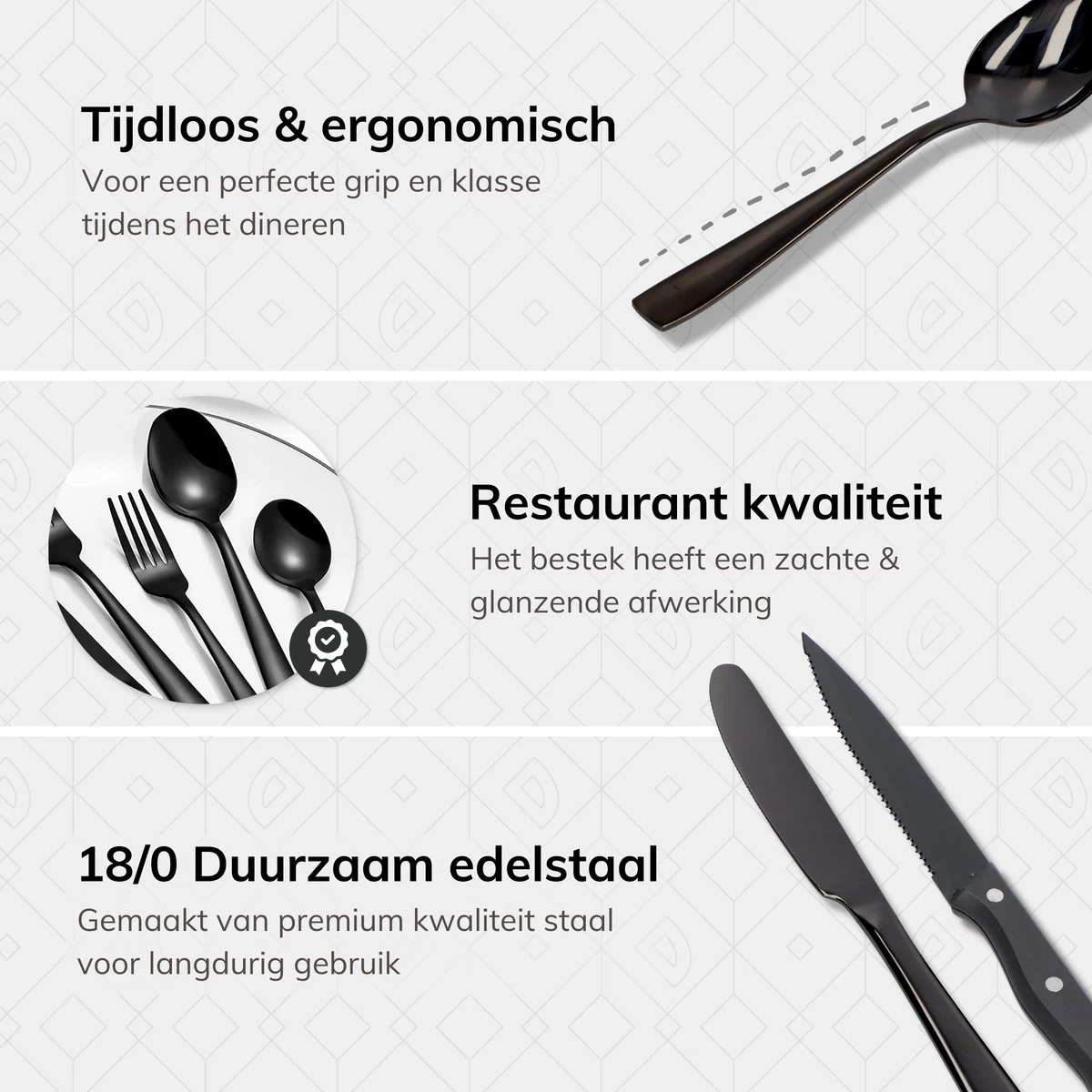 Deze prachtige zwarte bestekset van Deleca is een echte aanwinst voor op tafel. Dankzij zijn tijdloze ontwerp zorgt dit bestek voor een prachtige aanvulling op elke tafelsetting.
