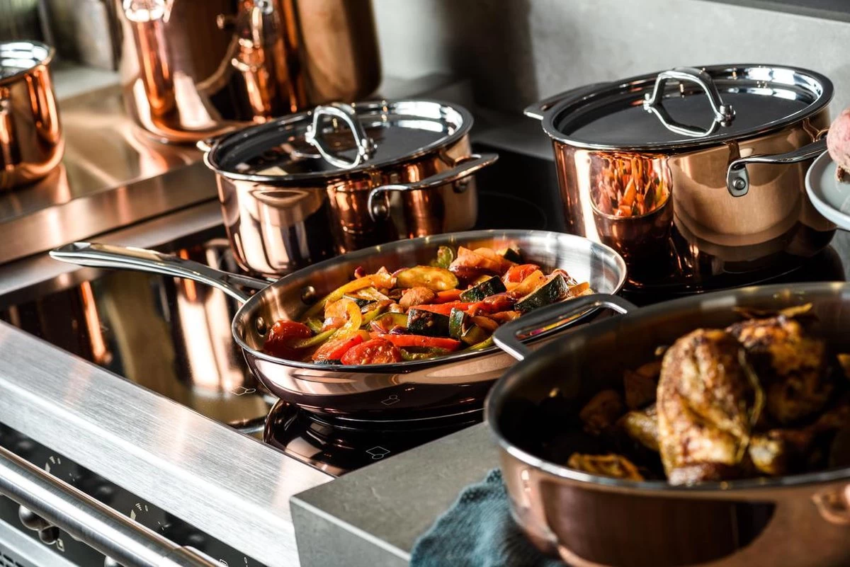 De koperen pannen zijn speciaal ontwikkeld voor inductie. Maar uiteraard kun je ze ook op gas en alle andere warmtebronnen gebruiken.