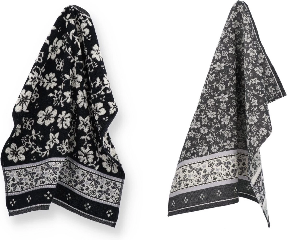 Luxe Keukendoek En Theedoek Dragonfly Zwart Van Bunzlau Castle | 100% Biologisch Katoen | Keukendoek 60x53cm En Theedoek 65x65cm