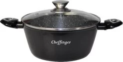 Cheffinger Pannenset – 10 Delig – Marmeren Coating – Inductie – Met Glazen Deksels – Zwart