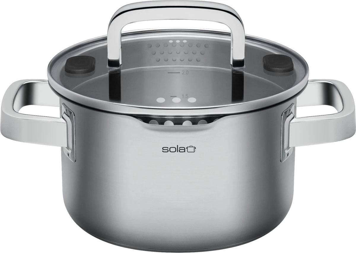 Alle pannensets van Sola hebben een nauwkeurige maatverdeling. Hierdoor kunt u makkelijk afmeten zonder gebruik te maken van een maatbeker.